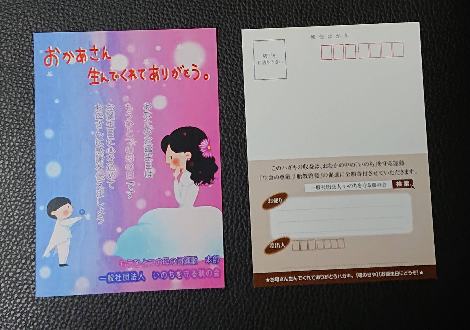 お母さん生んでくれてありがとうハガキ 2023.02.18 商品 お母さん生んでくれてありがとうハガキ 10枚1000円(送料込)赤と青のグラデーションがかわいい、お母さん生んでくれてありがとうハガキです。母の日や誕生日・記念日にお使いください♪ 購入のお問い合わせ ●お客様のお名前●お客様のメールアドレス●題名:【商品購入】+お客様のお名前●メッセージ: ①商品名 ②注文数 ②お支払方法(銀行振込) 前払いor後払いを選んでください以上をご記入の上、お申し込みください。 Tweet Share +1 Hatena Pocket RSS feedly Pin it 投稿者: inochi 商品 コメント: 0 「救命効果指数」と「笑顔効果指数」の導入を。前の記事 うまれるってうれしいなぁ次の記事